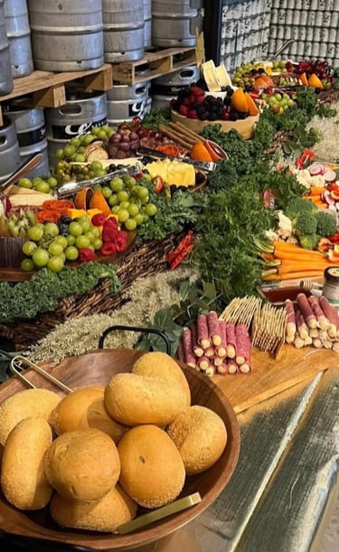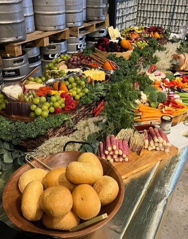 Handcrafted charcuterie boards and grazing tables with fresh, local ingredients.